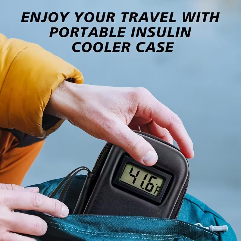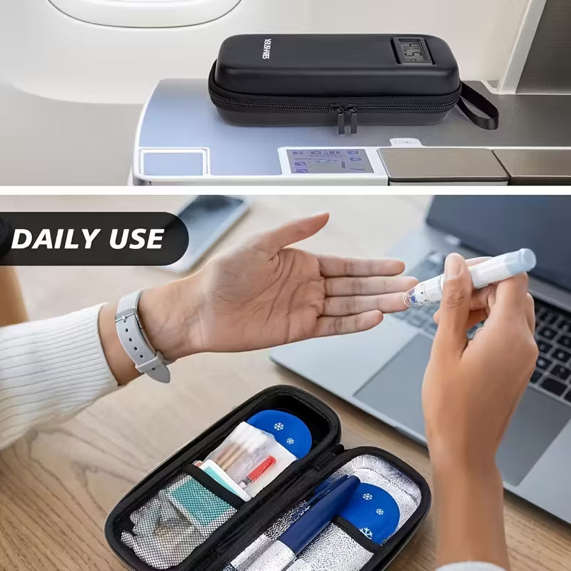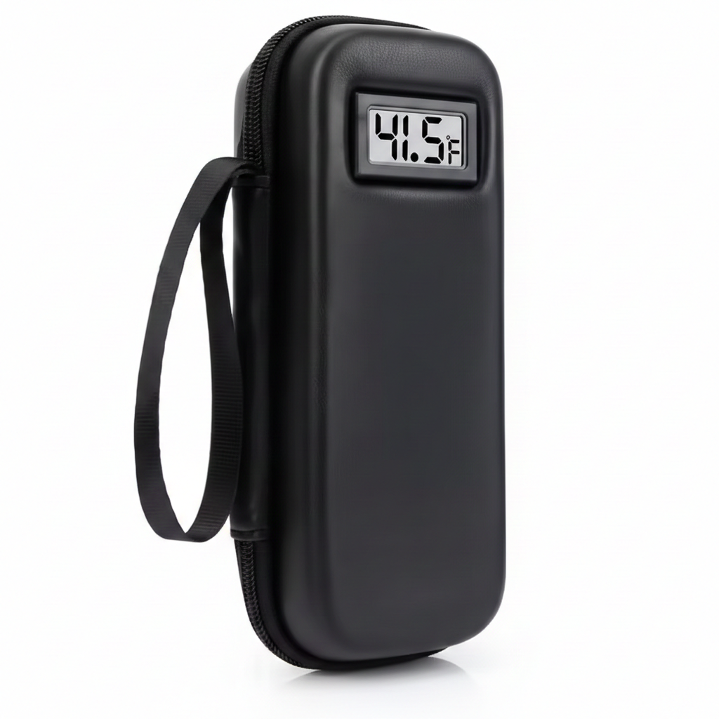 حقيبة تبريد الإنسولين مع شاشة حرارية – صندوق تخزين طبي محمول مع عبوتي تبريد